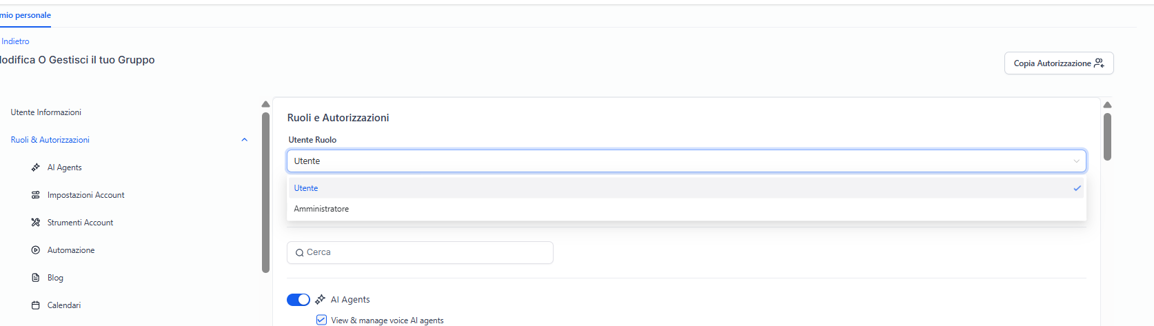 Usala quando vuoi dare accesso SOLO alla casella conversazioni (come nei casi dei setter).